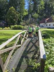 Heute begann unsere kleine Radtour schon um 8:10 Uhr mit der Zugfahrt von Gaisbach nach Summerau. Die kurzweiligen Gespräche während der Fahrt ließen die Minuten wie im Flug vergehen, und so starteten wir den 10-Mühlenweg, zunächst auf schmalen Straßen nach Grünmoos. Bald bog der Weg auf einen Wiesenkorridor ab und der Mühlen Trail nahm seinen sanften Lauf. Wir überquerten einen kleinen Bach und erreichten die Adams Mühle-1, die versteckt am Waldrand steht und doch wie ein stiller Zeuge der Zeit wirkt.
