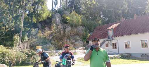 Nach einem kurzem Abschnitt auf dem Schotterweg erreichten wir die Lorenz Mühle-2. Hier gäbe es eine Einkehrmöglichkeit, heute ist es jedoch noch still, wir lauschten kurz dem Rascheln der Blätter und setzen unseren Weg fort. Weiter ging es auf Wiesenwegen, später durch den Wald zur Holzmühle-3. Johann war heute unser Foto-Knipser und so verweilten wir bei jeder Mühle ein wenig, während er mit geschicktem Blick super schöne Bilder schoss. Aufwärts ging es nun zur Anhöhe und am Güterweg Süssengraben gelangten wir zur Süßmühle-4. Sie beherbergt nun ein Sägewerk, doch die Geräusche aus dem Holzwerk spiegeln nur leise den geschäftigen Alltag wider. Wir radelten weiter durch den Wald hinauf zur tschechischen Grenze. Vorbei an Weißen Grenzsteinen folgten wir schönen Rastplätzen, auf Tafeln erzählt man sich dort lustige Schmuggler-Geschichten, die das Mühlen-Tal mit einem Augenzwinkern beleben