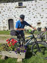 Der Weg zeigte sich hier recht herausfordernd, bevor wir die letzte Steigung hinauf zum Gerhard nahmen. Ingrid s Kuchen schmeckte wie immer traumhaft und so ließen wir die Tour noch mit Speckweckerl und kühlen Getränken ausklingen. Für mich war es heute eine der schönsten Touren, wunderbare, herausfordernde Wiesen- und Waldwege, eindrucksvolle Landschaften, kleine Bäche und urige Mühlen, dazu das Wetter mit Sonnenschein und blauem Himmel. Lustige Radlerfreunde und ein zufriedenes Gefühl, einen perfekten Tag erlebt zu haben.
