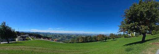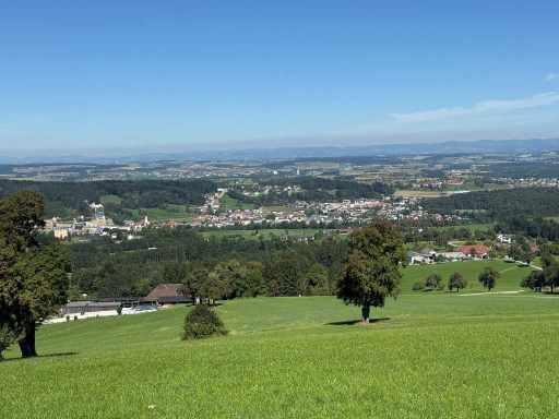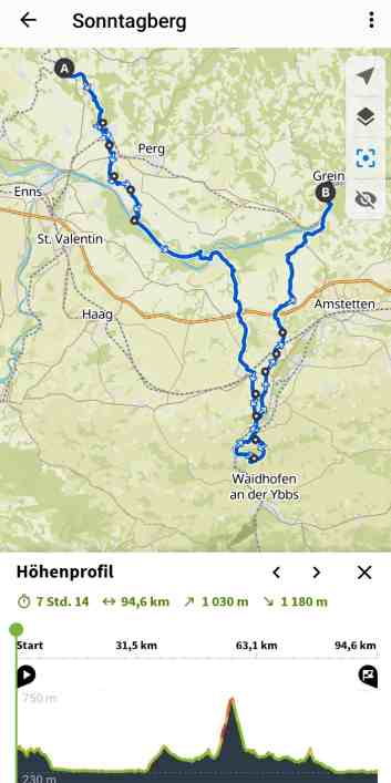 Wir steuern hinein in eine zunehmend größere Bergwelt, der Große, der Kleine Priel, der Dachstein, der Traunstein, alles sitzt so nah am Horizont, dass man die Bergluft förmlich schmecken kann. Durch Aspach gleiten wir nun hindurch und blicken Richtung Kematen. Jetzt wird die Basilika noch klarer sichtbar und auch der Anstieg wird sichtbar steiler, wir queren die Ypps, die sanft unter der Brücke dahin fließt und nehmen den Berg in Angriff. Zuerst auf einem Wiesenweg, dann weiter auf schmalen Straßerl. Wir erreichen endlich den so willkommenen Schattenwald, wo der Duft von Kiefer und feuchtem Boden auf steigt. Der Sonntagberg erhebt sich, groß, präsent und ehrfürchtig. Die Aussicht ist so überwältigend, Ernsthofen, Allerheiligen, Grein, Orte, die wie kleine Punkte am Horizont leuchten. Wir finden schließlich eine Pause nach 62 Kilometern und der Durst verlangt Gehör, wir stillen ihn mit Getränken, Lachen, gutem Essen und tollen Geschichten.