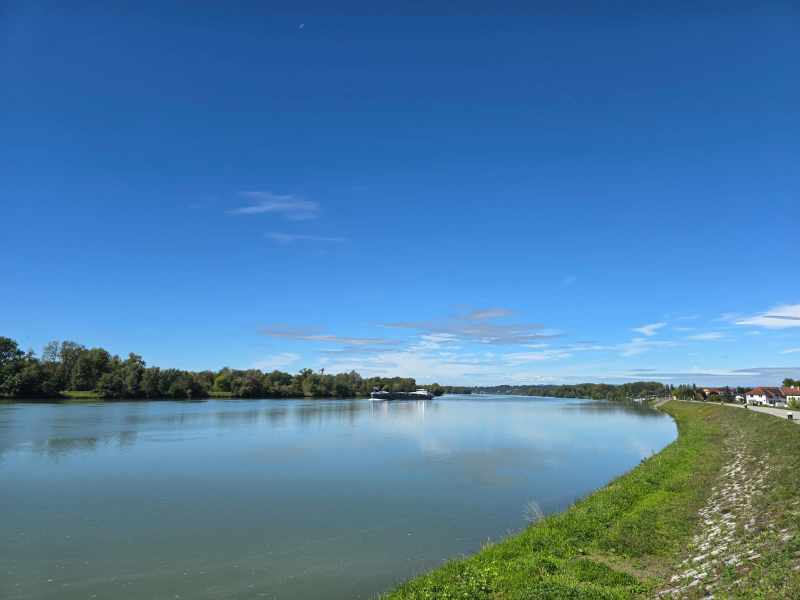 Und die Donau selbst, der mächtige Strom, zieht ruhig an uns vorbei, trägt Schiffe und lässt Radfahrer am Ufer verweilen. Wir folgen am Radweg dem glitzernden Wasser, der uns nach Au trägt. Auwälder stehen wie Wächter am Rand, Hasen suchen Schatten am Waldrand und die Gespräche anderer Radlerinnen und Radlern mischen sich mit dem gleichmäßigen Takt der Reifen. Franz ist heute nur in der Spitze unserer sieben Mann starken Truppe zu finden. Bei jedem Anstieg zieht er unwiderstehlich nach oben, bei jeder Abfahrt stößt er wie ein Pfeil nach vorn und so prescht er in Windeseile den Radweg bis Au an der Donau entlang. Im Au-Gasthaus sitzen wir 7 Freunde nun im Gastgarten, lachen, erzählen Geschichten und gönnen uns ein Eis. Dann geht es weiter nach Mauthausen, wo am Kai das Treiben nicht verstummt, ein Donau-Schiff gleitet lautlos flussabwärts, während am gegenüberliegenden Ufer die Enns den Strom trifft. Die Enns, einst Eisenstraße genannt, erinnert an vergangene Handelswege, während weiter oben am Fluss die Traun den Salztransport übernahm, bevor sie in die Donau mündet.