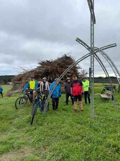 Wir rollten durch St.Pantaleon, nahmen Kurs auf Erla und Altenhofen und bald öffneten sich die Sonnenstrahlen erneut, als würden sie uns ermutigen, weiterzukommen. Nach dem lieblichen Ort Altenhofen ging's wieder bergab, hin zum sehr schönen Promenadenweg der uns jetzt durch St. Valentin brachte, wo die Kreuzrunse uns begleitete, ein kleiner Bach, dessen Rauschen wie ein stiller Rhythmus im Hintergrund wirkte. Dann stiegen wir wieder die Hügel empor, vorbei an Kapellen am Wegesrand, bis wir den Sieberg erreichten und das Laub der Bäume unsere Reifen fast lautlos dahin gleiten ließen. Über grobes Geröll schoben wir uns jetzt nach oben und während Fredi K, Ernst und Sepp spielerisch die Hindernisse umkurvten, kämpften wir anderen ziemlich damit. Am Sieberg-Gipfelkreuz angekommen keuchten wir erstmal durch und in die Ferne war schon der Kirchturm von Stadt Haag sichtbar.