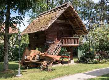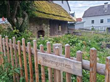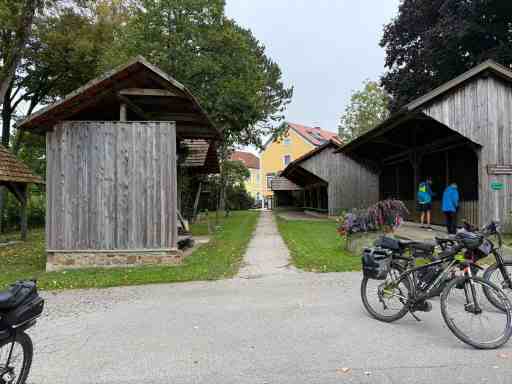 Auf den Güterwegen entlang der Erdbeer-Kulturen vom Lehner bahnten wir uns den Weg in die Stadt und fanden den Weiß-Park, mitten drin das Freilichtmuseum. Dort stehen etwa zwanzig alte bäuerliche Gebäude und Objekte, originalgetreu aus dem Mostviertel, friedlich in einer Parklandschaft, die zum Durchstreifen einlud. Wir ließen uns treiben, atmen die Ruhe dieses Ortes.