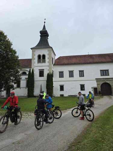 Nach einer Weile ging es nun weiter zum Tierpark und hinauf zum Schloss Salaberg. Johann merkte spät, dass er der Schlüssel für seinen Akku vergessen hatte, also kein Reserve-Akkuwechsel. Ein schneller Anruf bei seiner Sekretärin und die blonde Augenweide brachte die Schlüssel vorbei, rettete die Situation und brachte Johann seine Gelassenheit zurück. Beim, bis zum letzten Sessel ausgebuchten, Wirt zKrottendorf essen wir hervorragend und Alfred übernahm anlässlich seines Geburtstags unsere Getränke Rechnung. Herzliches Dankeschön Alfred. Die Reise nahm wieder an Kraft auf, als wir uns auf machten, Haidershofen zu erreichen.