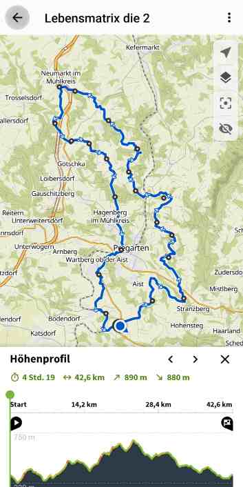 Nach einer kurzen Abfahrt fahren wir am Lärchenweg oberhalb des Ortes hinunter zum Ortsplatz von Neumarkt, kehren beim OxnWirt ein und genießen das Angebot der Wildwoche. Die Sonne strahlt weiter wunderbar vom Himmel, während sich weiche Grautöne in den Wolkenfeldern am Horizont spiegeln. Wir radeln nun bei Matzelsdorf hinüber nach Schienersdorf. Flugzeuge ziehen Kondensstreifen in den Himmel und neben uns tummelt sich ein kleines Rehrudel im Feld. Drei Tiere queren vor uns die Straße und mit anmutigen Sprüngen nehmen sie die steile Wiese hinauf in den nahen Wald. Der Rest der Tiere streckt ihre Hälse aus dem Feld und wartet geduldig, bis wir endlich die Straße räumen. Dann geht es durch Schmidsberg hinab, eine schnelle Abfahrt und im G'Veichterwald radeln wir ein kurzes Stück im Schatten. Wir passieren Hagenberg und gelangen am Radweg nach Wartberg. Die Hirsche im Rotwildgehäge von Schloss Haus beobachten uns, während wir durch den wunderbaren Park radeln. Noch das Stück Richtung Gaisbach und wir beenden unsere Abschluss-Tour 2025 mit einem Abschluss Getränk bei Ingrid und Gerhard.