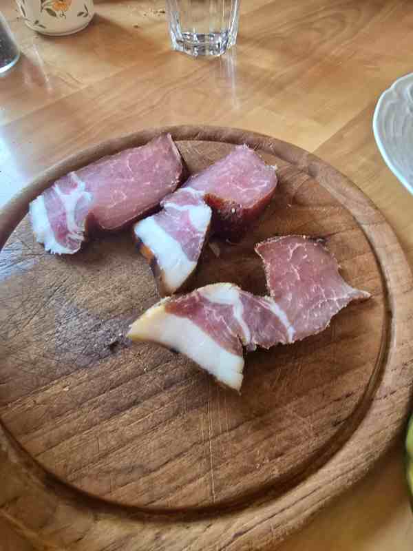 Nach der liebevoll zubereiteten Jause von Maria und Franz, die uns mit frischem Brot und duftendem Speck, wunderbaren Kekserl und wärmenden Glühmost verwöhnt haben, brechen wir nun voller Energie auf. Franz und Maria ein herzliches Dankeschön für eure so herzerwärmende Gastfreundschaft. Am Weg nach Obenberg in der Ferne nun dieses traumhafte Panorama, ein klarer Himmel, in dem sich ein intensives Blau mit den schneebedeckten Gipfeln der Alpen vereint, wunderschön.