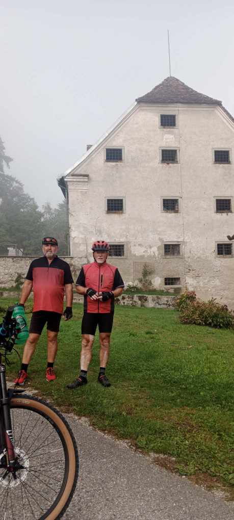 Am letzten warmen Sommertag brachen Sepp, Fredi und ich früh auf, genau um neun, als die Sonne schon kräftig am Himmel stand. Wir rollten los von Greinsberg über Kollnerberg, hinunter in den Wienergraben, wo der Tag sich zu einem grauen Schleier verdichtete. Die Luft war klar, doch der Nebel zog träge seine feinen Fäden durchs Licht. In Mauthausen angekommen, hüllte uns der Nebel ein wie ein altes, weiches Tuch. Es war nicht kalt, aber der Tau setzte sich an Haare und Metall, hinterließ kleine Perlen am Fahrradrahmen. Es ging durch den Markt Mauthausen und folgten dann den Brücken über die Donau und dem Unterwasserkanal. Entlang der Donau begleitet unseren Tritt ein flaches Rauschen, während das Wasser des breiten Stromes ruhig dahin floss. Wir rollten durch St. Pantaleon, ein beschaulicher Ort, der in meiner Erinnerung kleiner schien, sich jetzt aber viel größer gab. Beim Gasthaus Winklehner ging es vorbei und nach Erla zog es uns sanft bergauf, das Fahrtempo verlangsamte sich und in der wunderbaren Ruhe vernahmen wir das Knistern unter unseren Räder. Nach dem Sperberteich bog der Weg ein in versteckte Pfade, die uns zum beschaulichen Schloss Erla führten. Von dort schlängelte sich unsere Tour nun durch Altenhofen, wo die Sonne endlich die Nebelschicht zerschnitt und behagliche Wärme in die Luft legte.