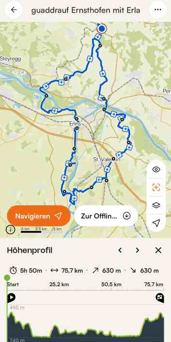 Länge - 79 km _Höhenmeter - 736 Hm Zeit - 6 Std🍽️ 🍻 - Rahhofer Kronstorf Konditionen - 🌑🌑🌑